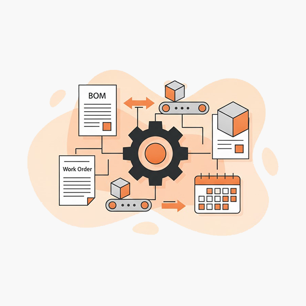 Structured manufacturing operations with BOMs, work orders, routing, and capacity planning to support efficient resource utilization and accurate production scheduling.